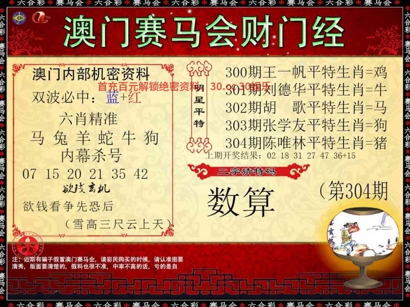 | 305期四肖 | 猪马鸡鼠 | 开:發00 |